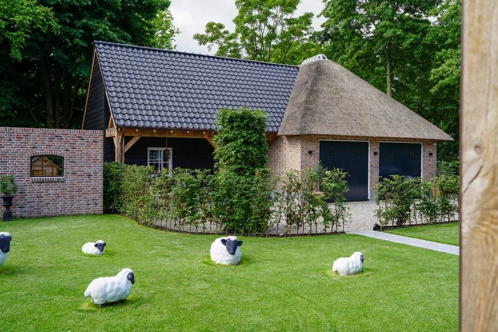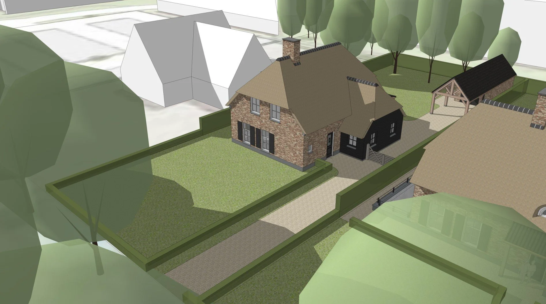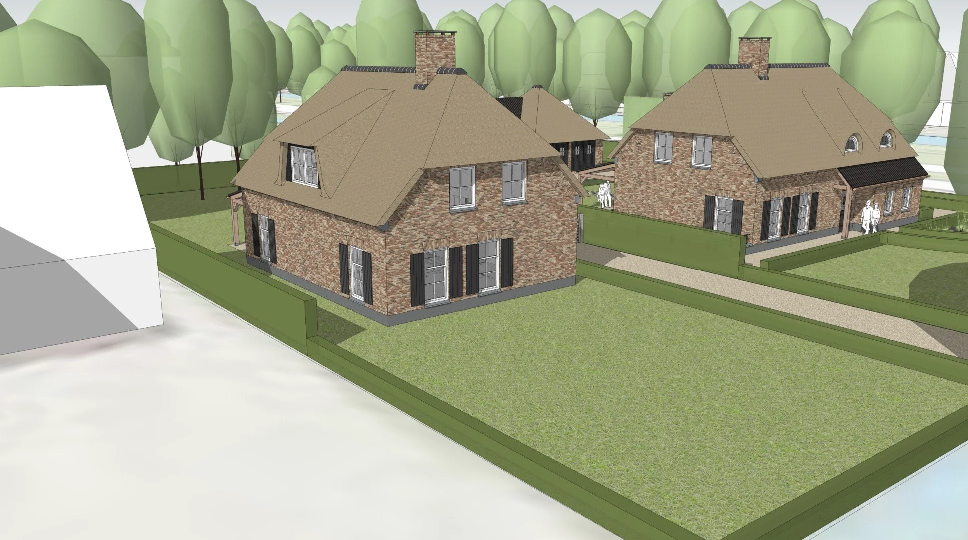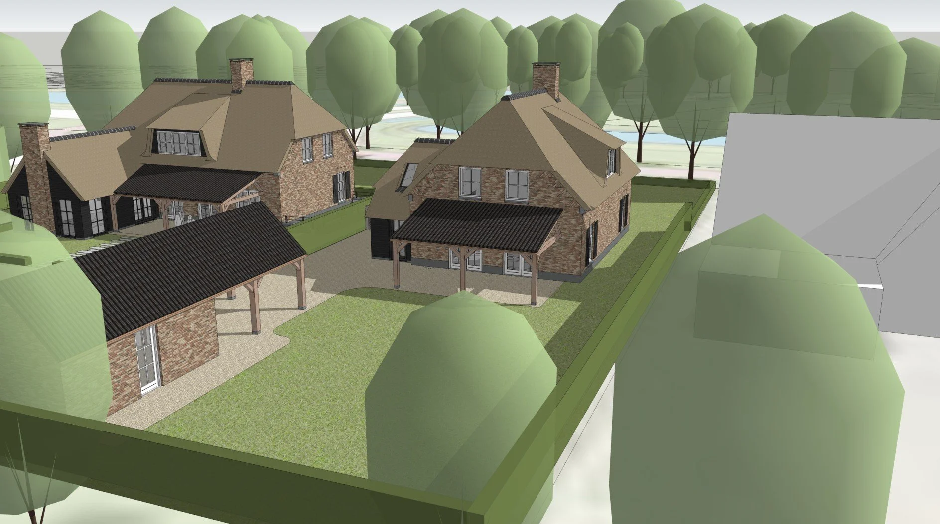In 2020 & 2021 hebben we in de Reeshof in Tilburg deze twee woningen met 2 garages gerealiseerd voor de Familie Hamers. Onderstaand ook de 3D impressies zoals deze door de architect zijn gemaakt. Beide woningen zijn voorzien van een prachtige rieten kap. Het oogt alsof het er al jaren stond, maar is toch echt volledig nieuwbouw!